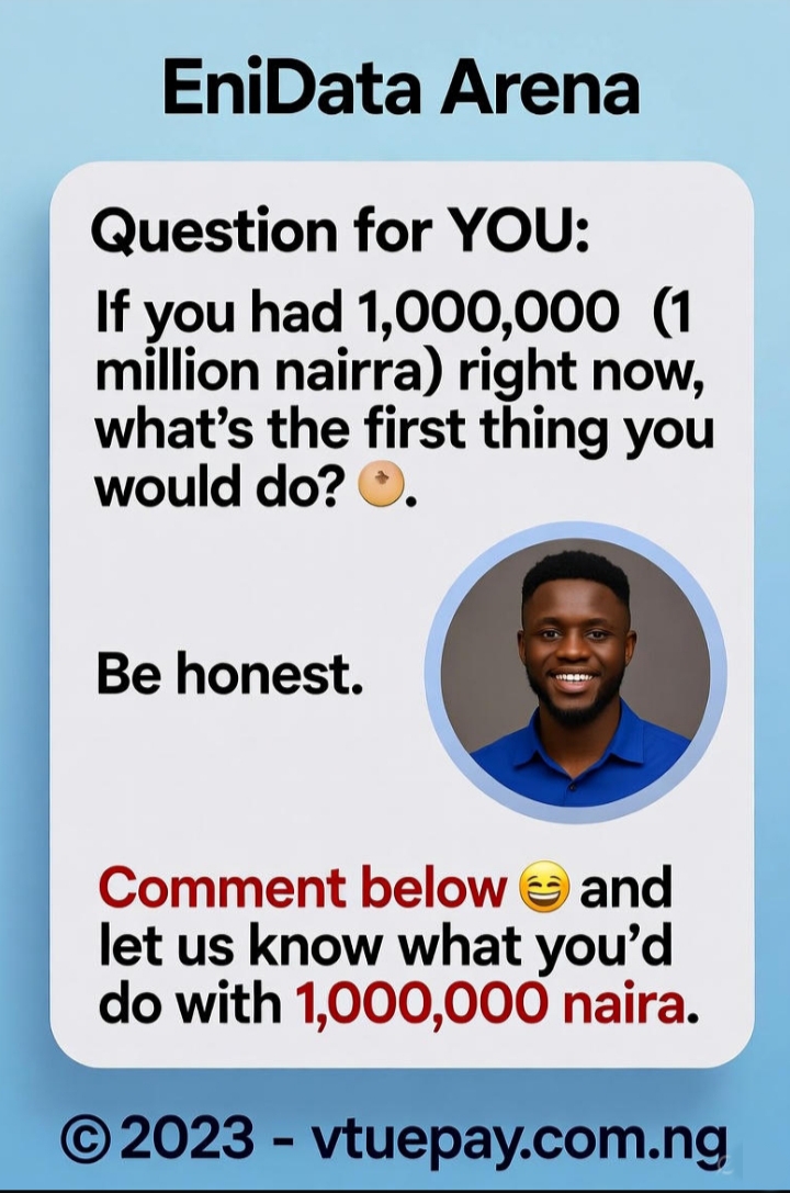 β€œQuestion for YOU: If you had 1,000,000 (1 million naira) right now, what’s the first thing you would do? πŸ‘‡ Be honest πŸ˜….”